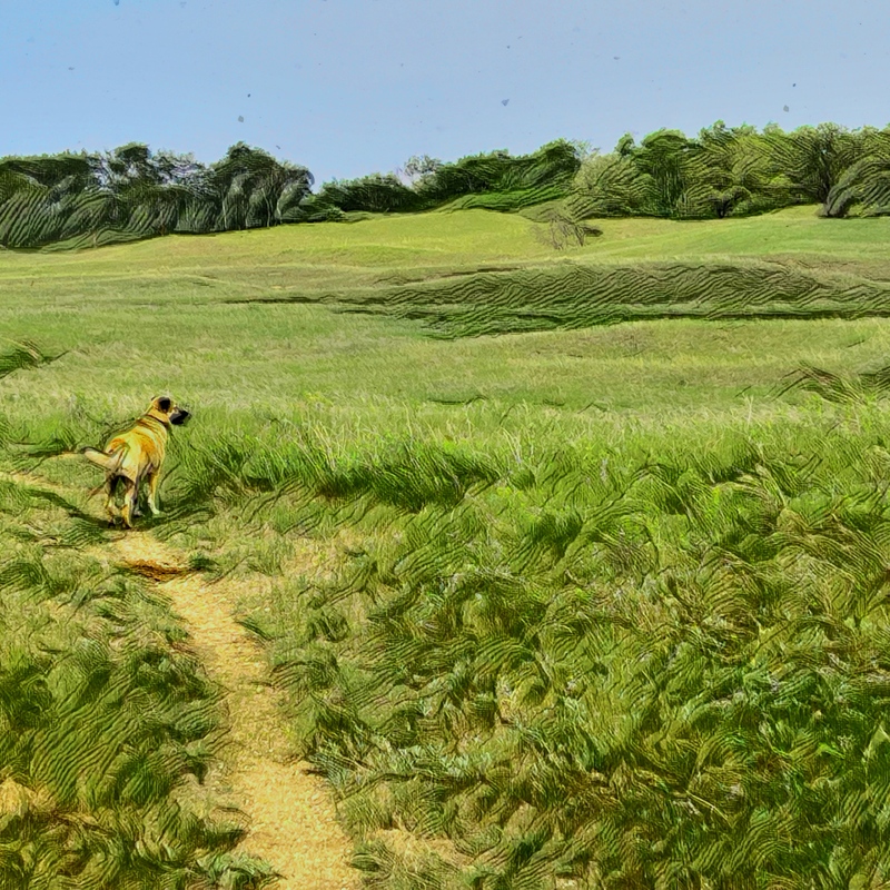 He roams the land like it’s his inheritance—no fences, no boundaries, just open sky and 1000 acres of permission to be fully dog. This farm is his cathedral, his kingdom, his favorite dog park in the world. He greets the morning with a full-body tail wag that shakes him from nose to hind, then runs the perimeter like he’s announcing the day’s arrival to every rabbit, squirrel, and hawk. His stories have become part of ours—muddy paws, watchful eyes, that uncanny sense he has of when someone needs company or comfort. Navi doesn’t just live on the farm; he belongs to it, and it to him. He reminds us every day that rescue is never one-sided—that in saving him, something in us got rescued too.