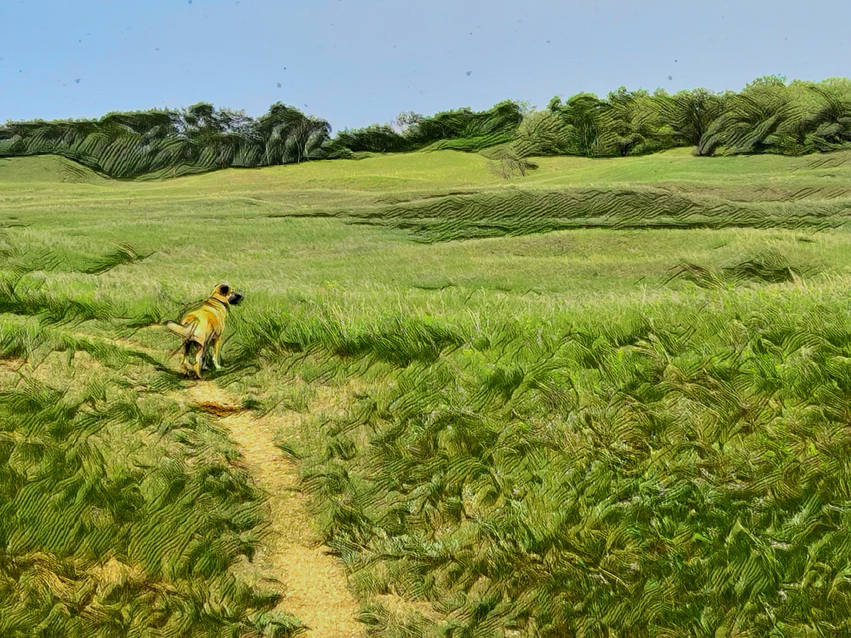 He roams the land like it’s his inheritance—no fences, no boundaries, just open sky and 1000 acres of permission to be fully dog. This farm is his cathedral, his kingdom, his favorite dog park in the world. He greets the morning with a full-body tail wag that shakes him from nose to hind, then runs the perimeter like he’s announcing the day’s arrival to every rabbit, squirrel, and hawk. His stories have become part of ours—muddy paws, watchful eyes, that uncanny sense he has of when someone needs company or comfort. Navi doesn’t just live on the farm; he belongs to it, and it to him. He reminds us every day that rescue is never one-sided—that in saving him, something in us got rescued too.